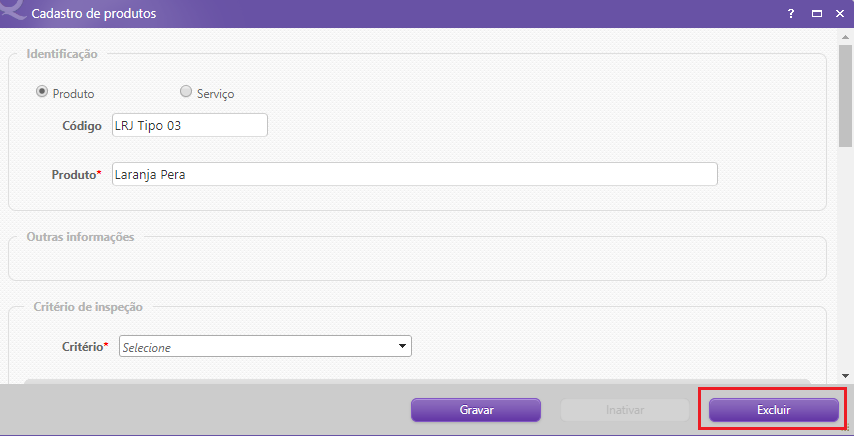 O sistema só irá deixar excluir um produto ou serviço somente se ele não tenha sido usado no sistema, ou seja, se o produto já tem inspeção feita, não será possível excluir, somente inativar. Neste caso ao tentar excluir utilizando a lixeira