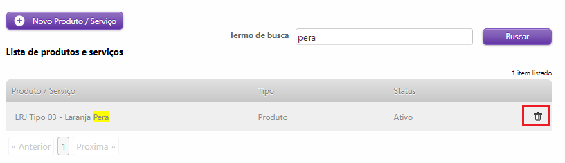 Para excluir um produto ou serviço acesse a tela de cadastro e siga os passos abaixo, lembrando que é necessário ter permissão em seu nível de usuário.