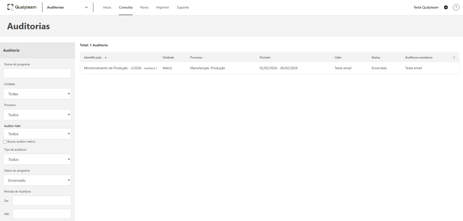 Após buscar pela auditoria desejada, clique na mesma para abrir a tela de detalhes da auditoria.