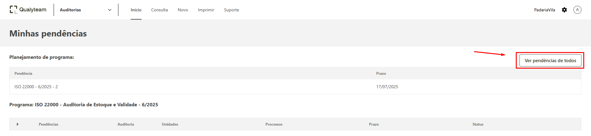 - Clique no botão Ver pendências de todos localizado na parte superior da tela à direita