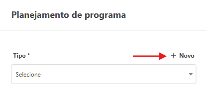 - Na tela de Planejamento de programa sobre o campo Tipo clique na opção +Novo