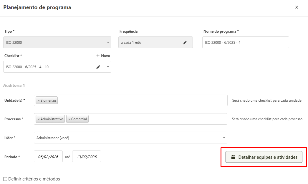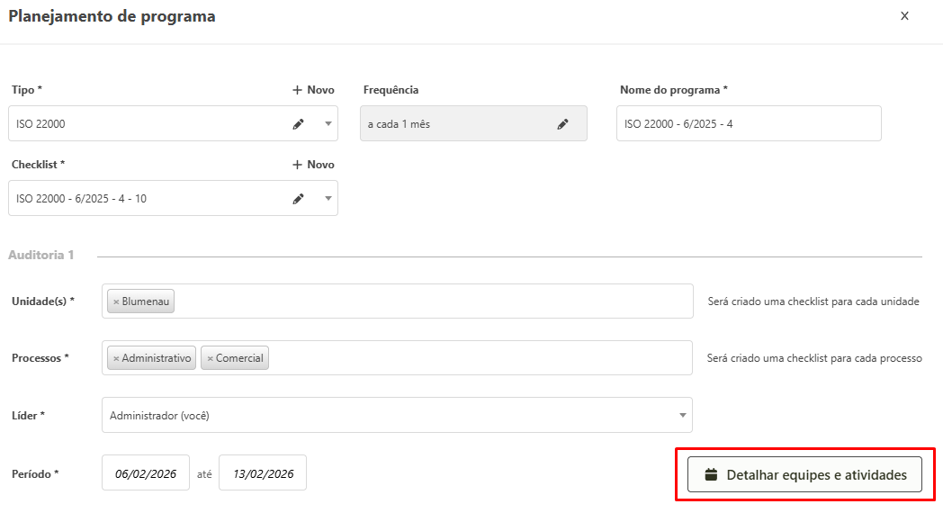 O detalhamento da equipe e atividades pode ser realizado enquanto o planejamento do programa é feito ou enquanto a auditora está em andamento, por meio da tela de edição e somente por quem cadastrou o programa. Abaixo será explicado como é feito.