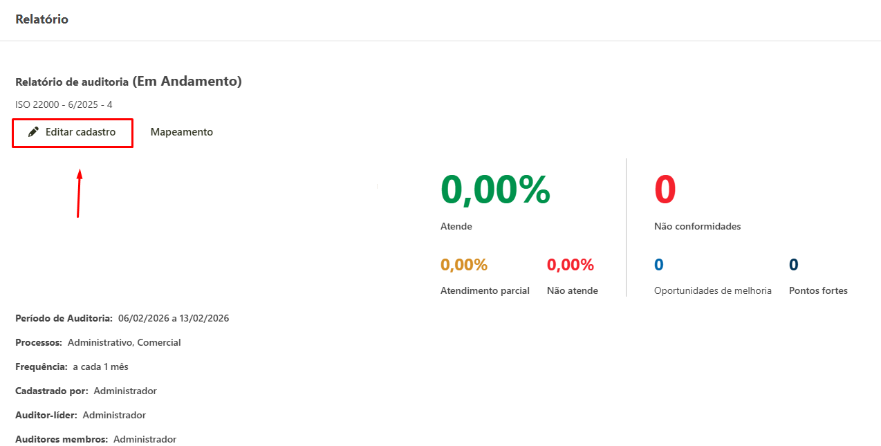 - Na tela de detalhes do programa de auditoria, clique em Editar cadastro.