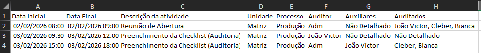 Exportar lista de atividades por meio da tela de edição de auditoria