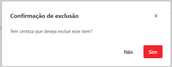 - Ao clicar no botão, o sistema irá solicitar a confirmação. Clique em Sim caso queira fazer a exclusão ou clique em Não caso não queira.