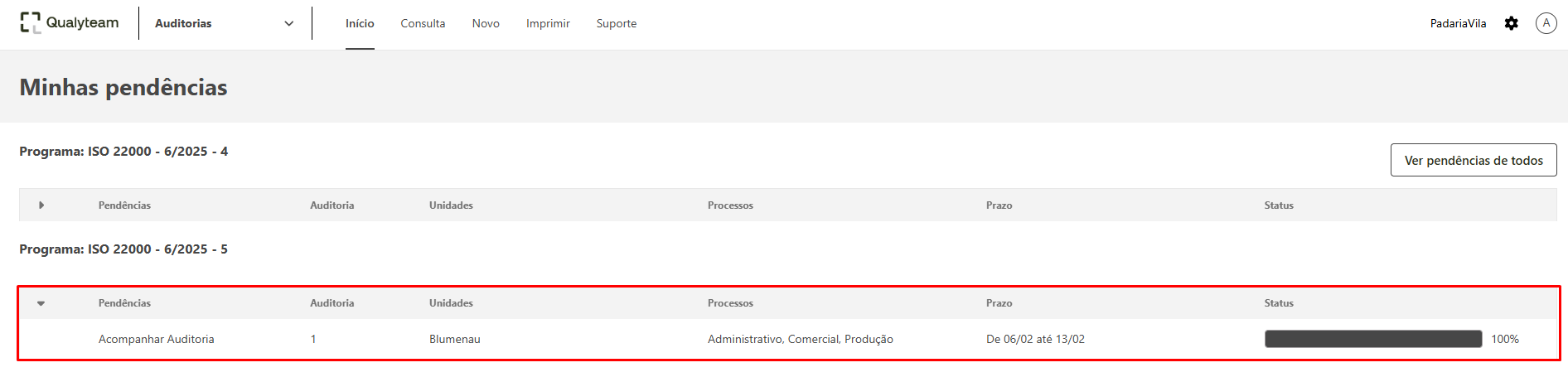 Na tela de pendências localize o programa que está 100% auditado e clique no mesmo.
