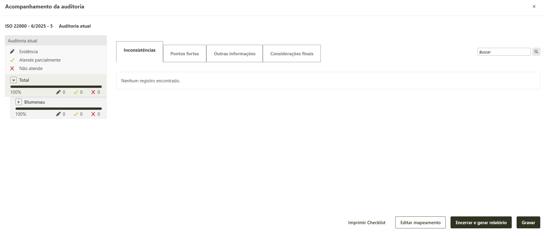 Caso não tenha sido identificada nenhuma não conformidade na auditoria, clique em