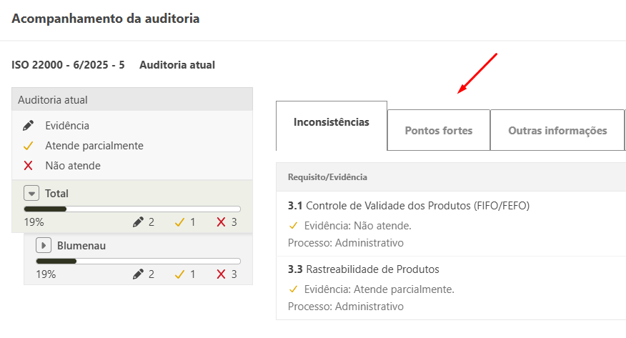 Os pontos fortes podem ser definidos como pontos positivos que foram identificados durante a auditoria, sejam atitudes de colaboradores ou até mesmo a forma que o processo está organizado.