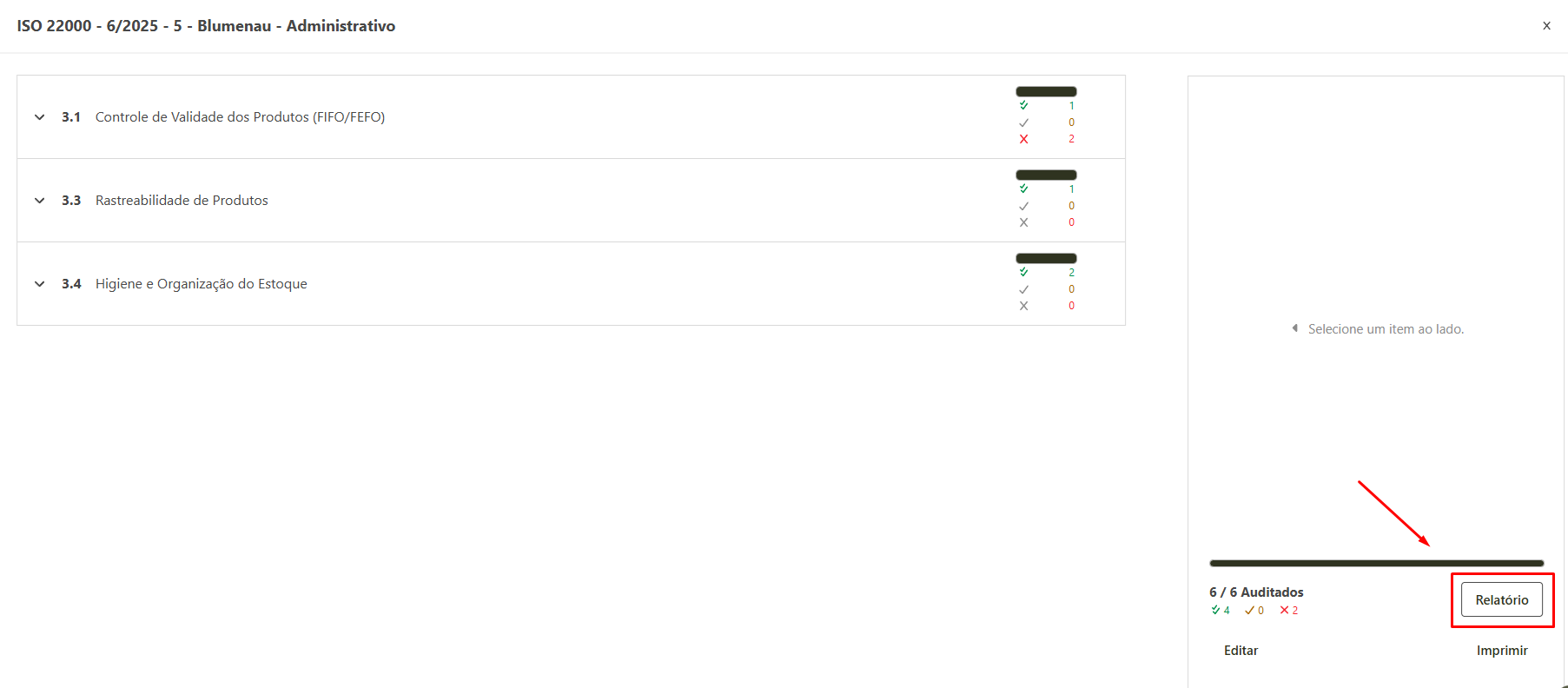 - Clique sobre a opção Relatório localizado na parte inferior direita