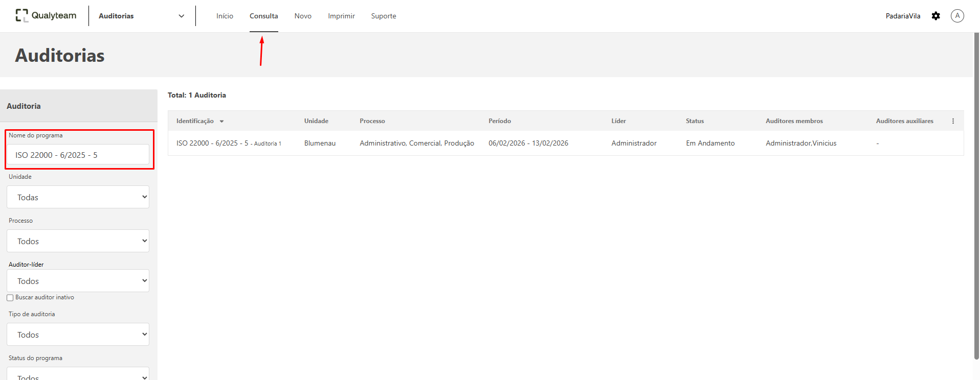 - Direcione-se para a tela de consulta de auditorias, e localize o relatório desejado.