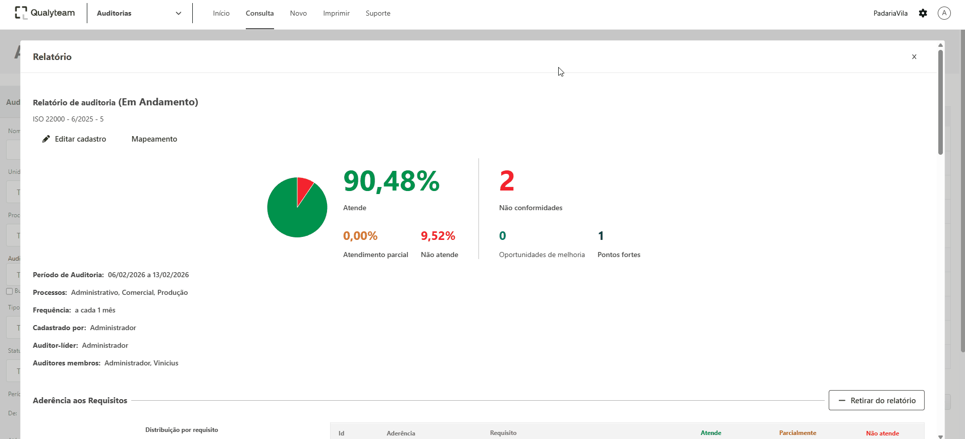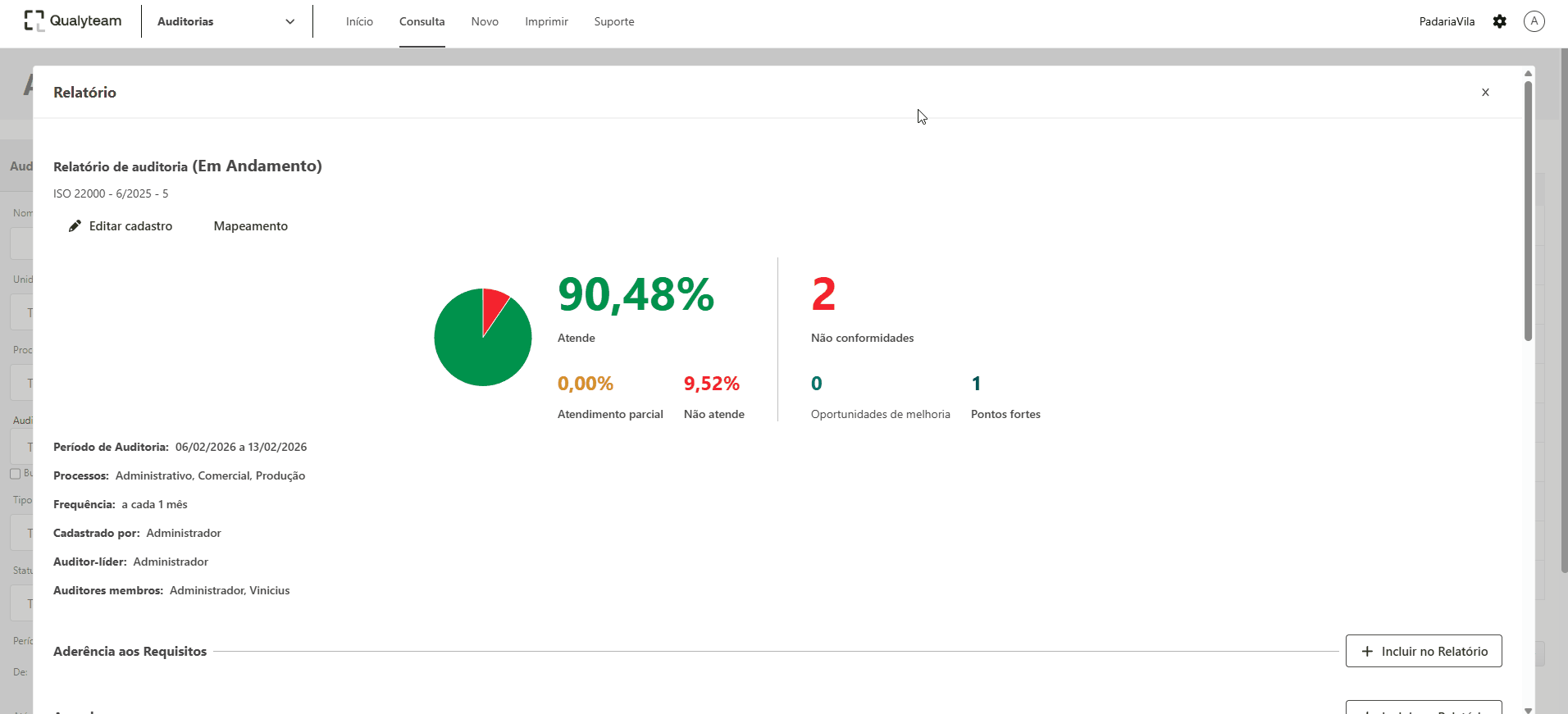 Nota: a opção de retirar ou incluir do relatório, está disponível somente para o auditor líder do programa de auditoria.