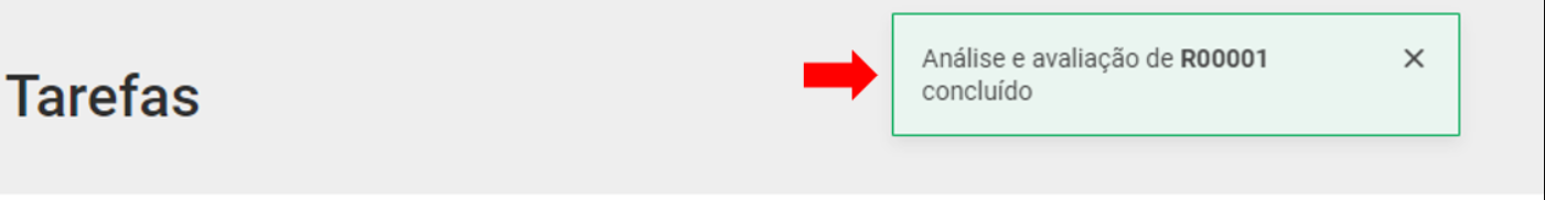 Após concluída essa etapa, o sistema emitirá um aviso informando que a Análise e avaliação do Risco em questão foi concluído, conforme imagem abaixo: