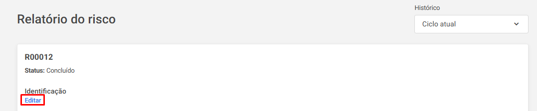 Ao acessar o relatório do risco, o sistema exibirá a opção Editar em todos os ciclos do risco, permitindo realizar os ajustes necessários: