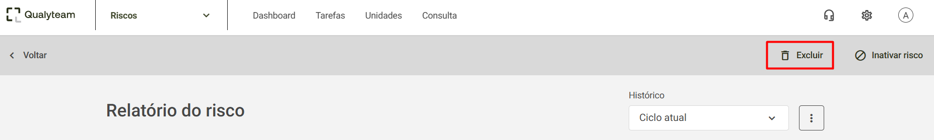 Na tela de Relatório do Risco, basta selecionar a opção Excluir: