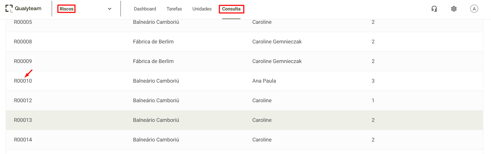 Acesse a tela de Consulta e localize o risco que deseja excluir.