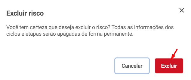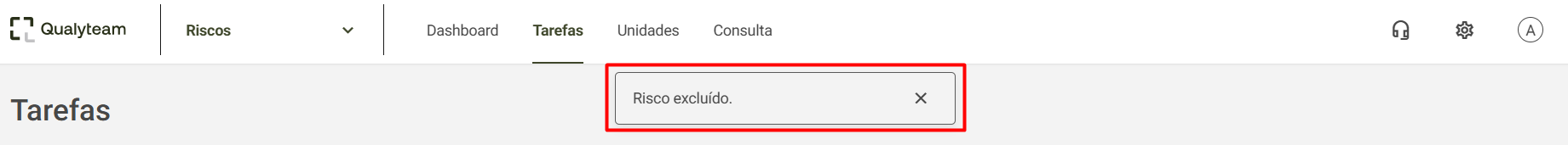 Após a confirmação, o sistema notificará que o risco foi excluído com sucesso.