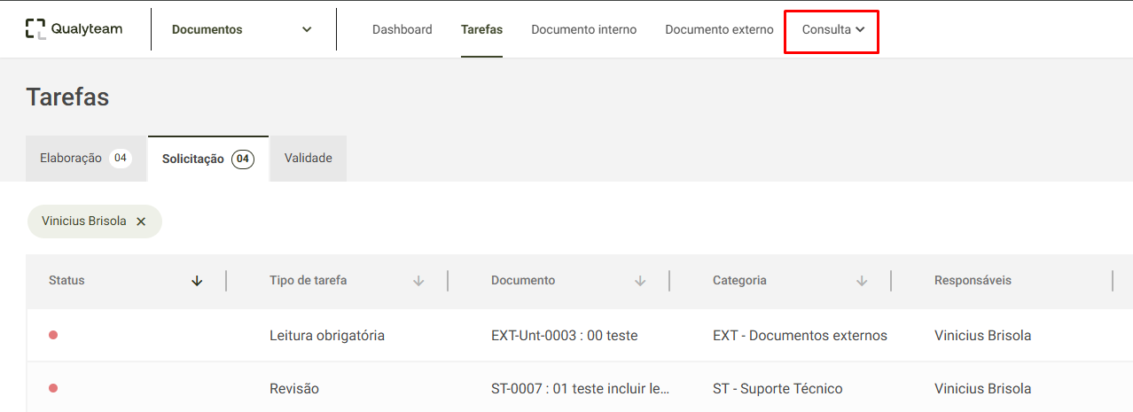 Em seguida, serão exibidos todos os documentos cadastrados no seu sistema. Aqui existem duas opções de consulta.