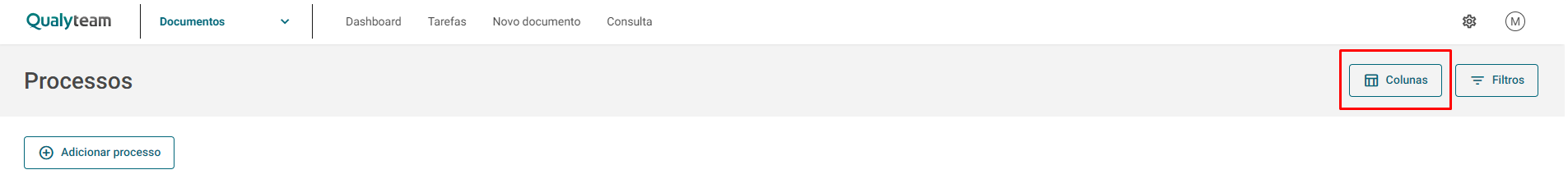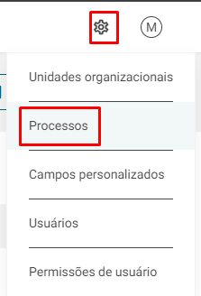 - Acesse o menu de Configurações, localizado no canto superior direito da sua tela, clicando no ícone de engrenagem. Logo em seguida clique em Processos.