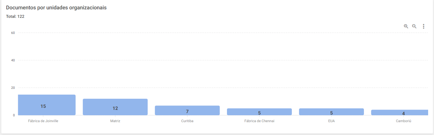 Mostra a quantidade de documentos atribuídos a cada unidade, como por exemplo: Matriz, Filial SP, Filial RJ, etc.