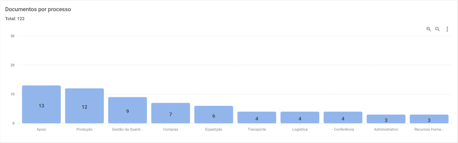 Aponta a quantidade de documentos vinculados a cada processo cadastrado no sistema, como por exemplo: Produção, Comercial, Financeiro.