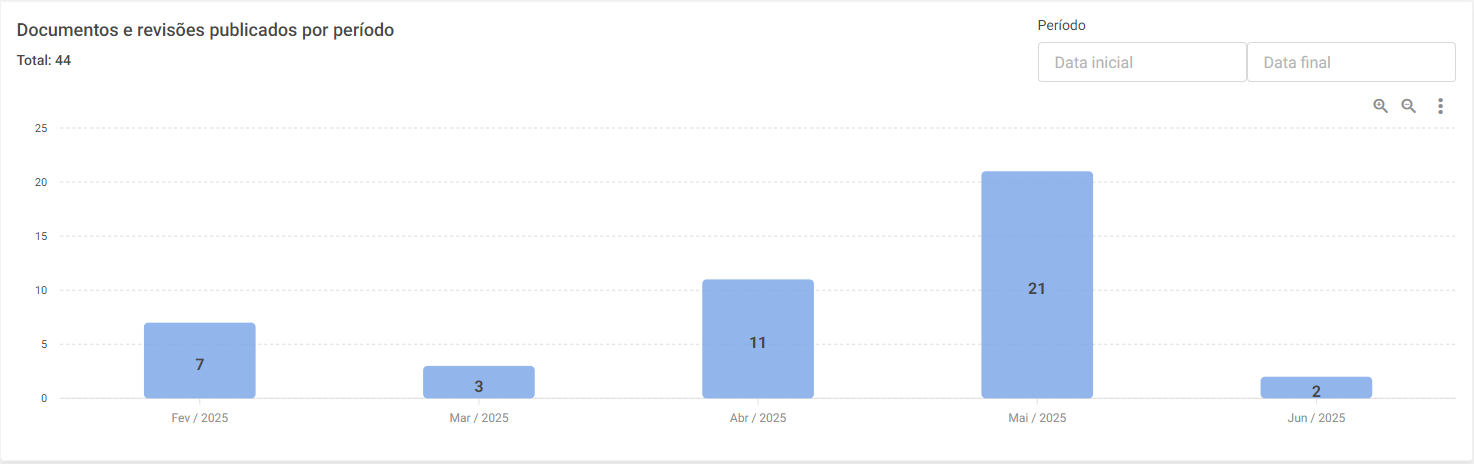 O dashboard do módulo de Gestão de Documentos foi desenvolvido para facilitar os usuários na visualização dos dados mais importantes relacionados aos documentos registrados no sistema.