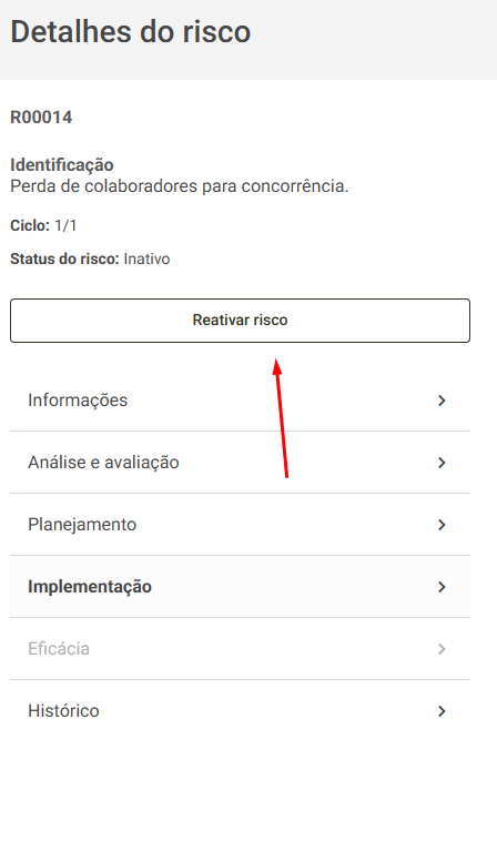 Para mais informações sobre a funcionalidade de inativar riscos, acesse este artigo.