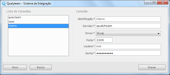 Para cadastrar uma conexão será necessário preencher todos os campos, conforme explicação abaixo: