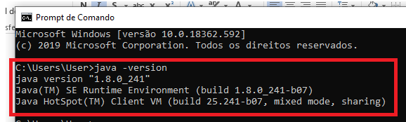 Após a instalação, feche o prompt de comando e abra-o novamente. Execute novamente o comando java -version para checar se a instalação anterior foi feita com sucesso. Se tudo foi instalado de forma correta, ao executar o comando, aparecerá na tela a versão do java que foi instalada. Com essa mensagem aparecendo agora sim é possível configurar a execução do Service.