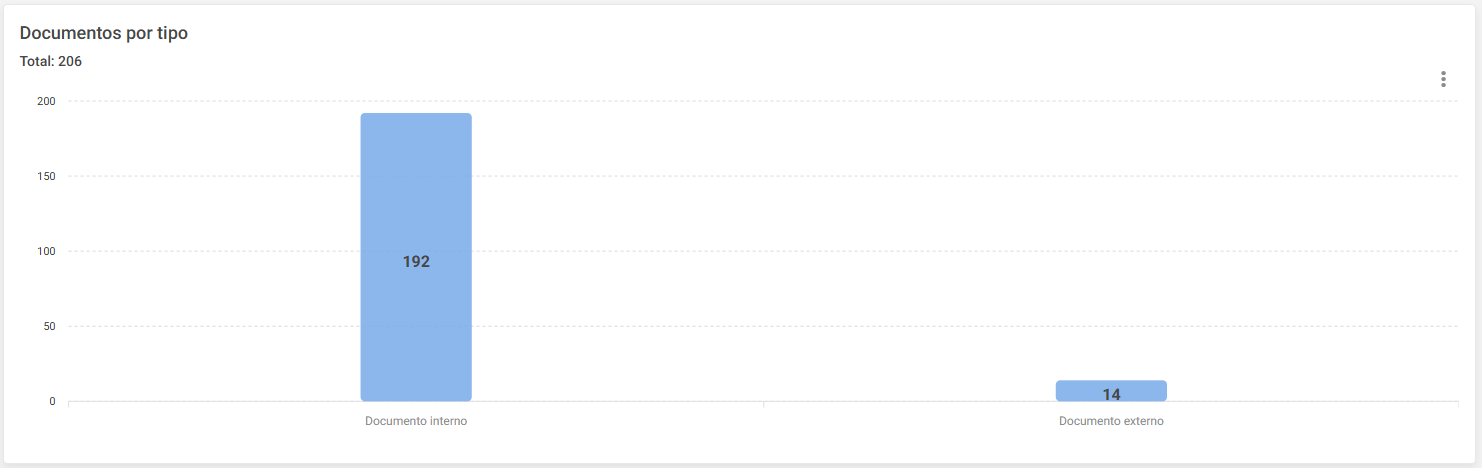 Esse gráfico apresenta a quantidade de novos documentos internos e externos, permitindo acompanhar a quantidade de documentos cadastros.