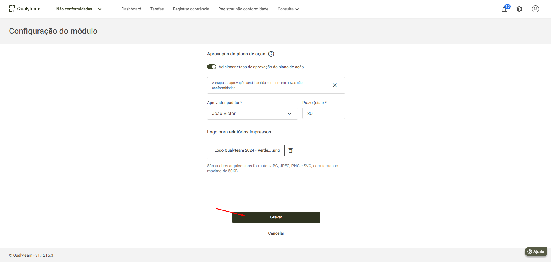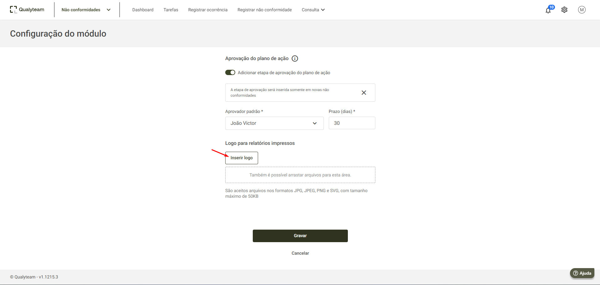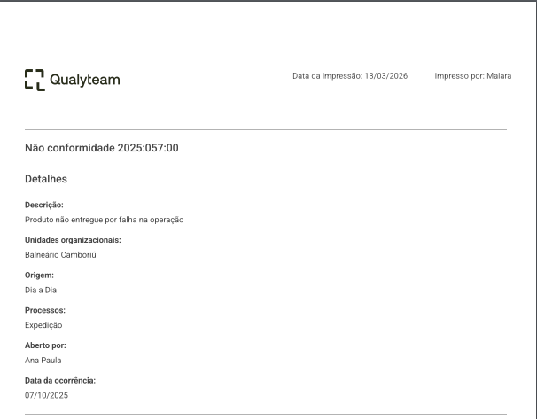 - Após realizar essa configuração, o logotipo será exibido automaticamente nos relatórios impressos do módulo de Gestão de Não Conformidades.