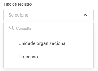 Tipo de registro: Possibilidade de buscar pelo tipo de registro alterado (unidade organizacional e processo).