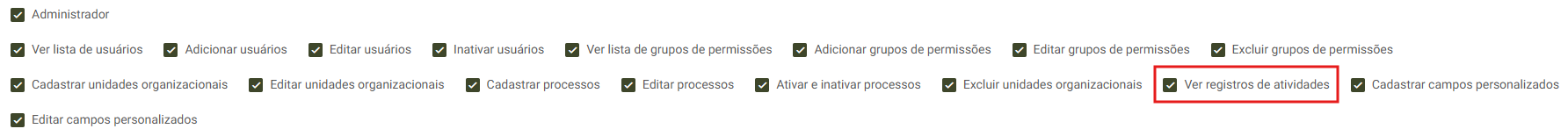 Para utilizar essa funcionalidade, é necessário habilitar a permissão “Ver registros de atividades” nos grupos de permissões.