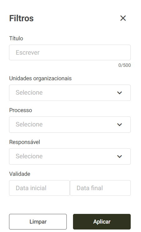 - Utilize os filtros necessário para localizar o documento externo que deseja excluir:
