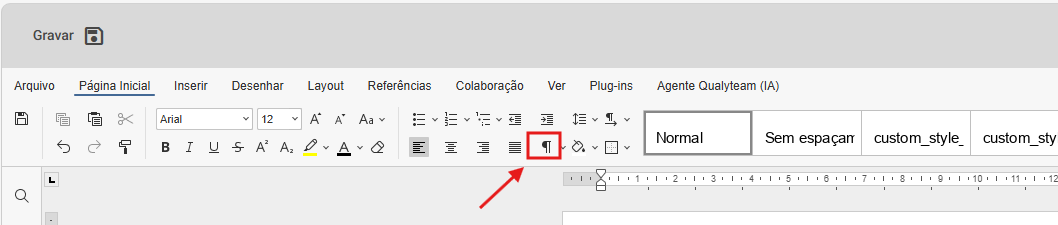 1. No editor, clique no ícone para exibir os caracteres não imprimíveis.