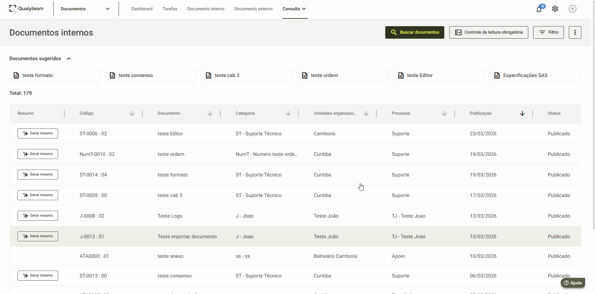 1. Acesse o documento pela tela de Consulta. Existe a funcionalidade "Alterar arquivo", que permite abrir o documento no editor para edições. Caso essa opção não esteja disponível, é necessário habilitar a permissão "Alterar arquivo publicado" em: Permissões nível de usuário - Documentos
